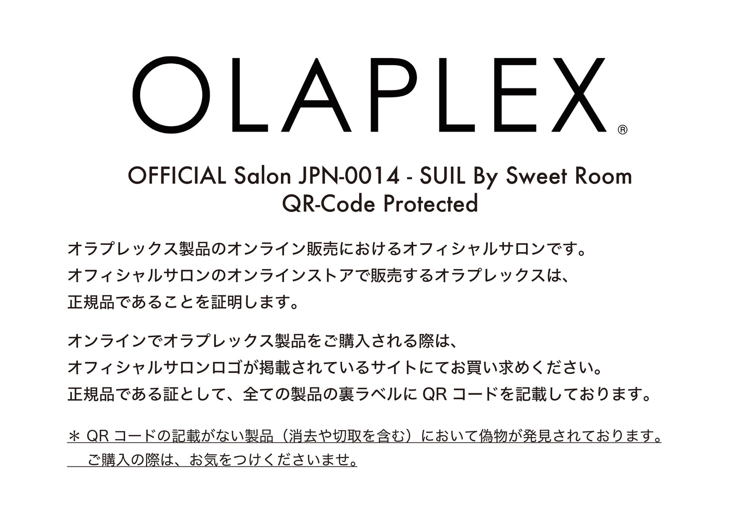OLAPLEXをはじめとして、SUIL ONLINE SHOPで取り扱う商品は全て正規品でございます。